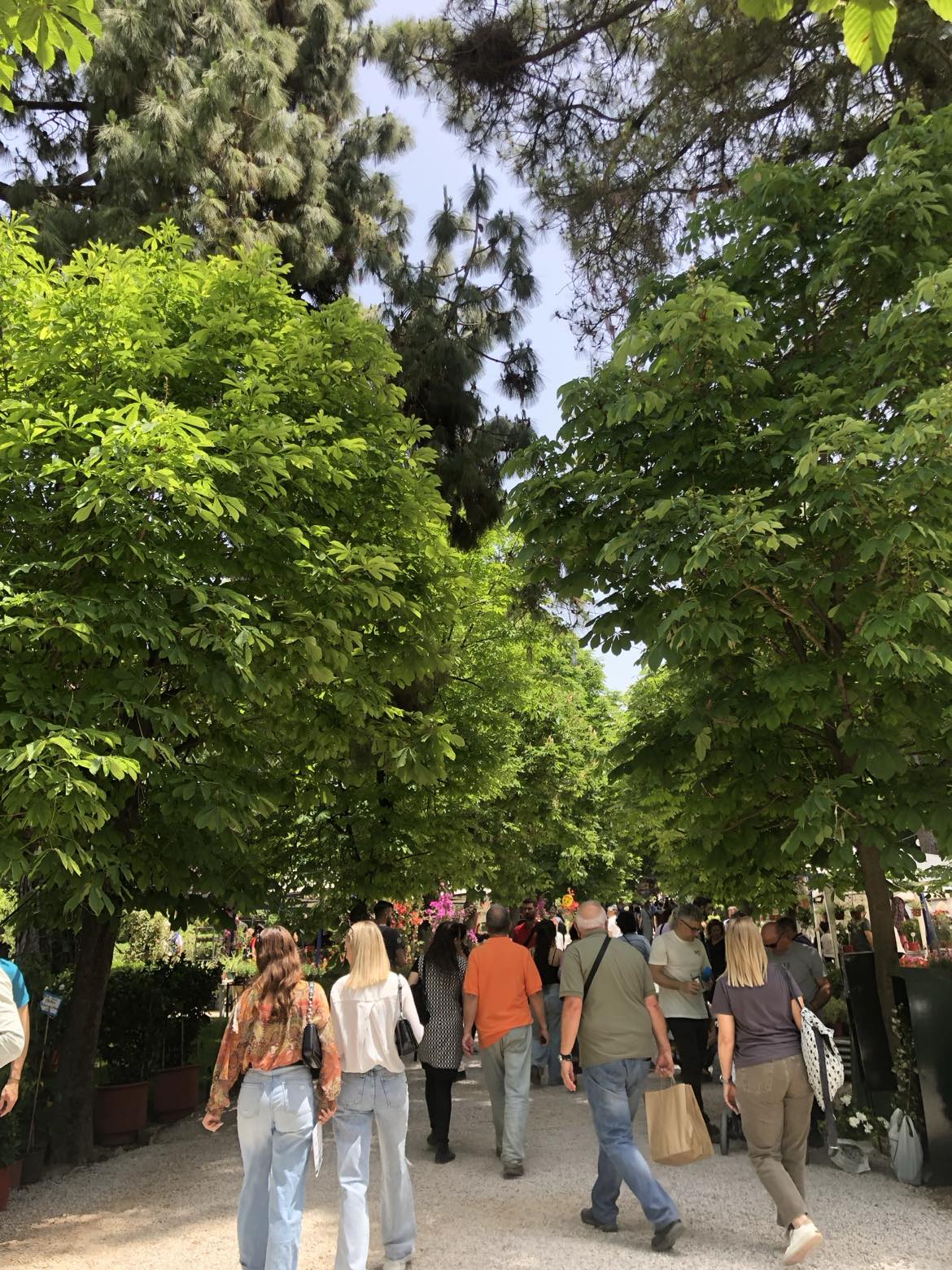 Άλλοι όπως εγώ ανηφόριζαν μέσα από το πάρκο προς τον χώρο της έκθεσης. Μπροστά στις στήλες του Ολυμπίου Διός που οι σκιές τους βάθαιναν, ζευγάρια έβγαιναν φωτογραφίες και από μακριά ακουγόντουσαν ύμνοι. Συλλαλητήριο, μου είπε χαμογελαστά μια ξανθιά κοπέλα που είχε βγάλει βόλτα δυο λευκά σκυλάκια. Είναι ύμνοι του Παναθηναϊκού, είπε ένας κύριος που προχωρούσε με τα παιδιά του προς το Καλλιμάρμαρο. Μια σειρά αστυνομικοί παραταγμένοι αστειευόντουσαν και από πάνω τους ευτυχισμένοι παπαγάλοι έκραζαν μέσα στις φυλλωσιές αρχαίων δέντρων.